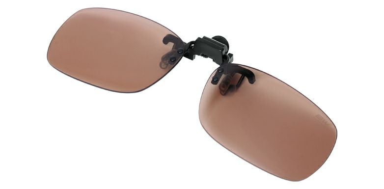 ポップアップ偏光レンズの跳ね上げ式クリップオン。 眼鏡の上からクリップで挟むと偏光サングラスに早変わりする前掛けタイプ。光量が足りなくて見辛い状況などに、跳ね上げて使用可能。