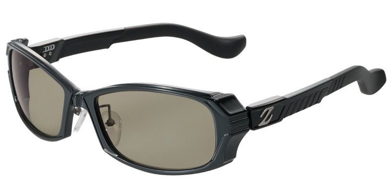 特性が異なる素材を組み合わせ、質感の異なる黒を一つに。 墨入れ塗装で精悍且つ立体感のある繊細なフロントデザインを実現。バイザーは遮光性と風の巻き込みを防止する機能性を併せ持つ。フロントとテンプルには別素材の樹脂を配しβチタン製バネヒンジで接続。フレーム全体の最適な弾性が快適なフィット感を生み出す。調整可能な厚めのモダンとテンプル中央に配置したエラストマー製パーツ。最適なレイアウトで絶妙な重量バランスを実現。