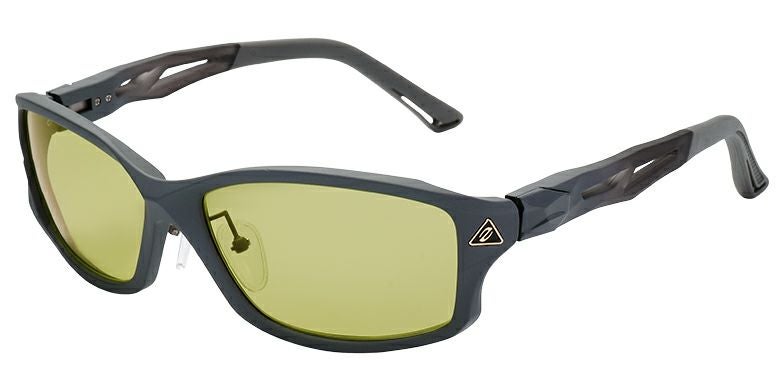 βチタン製バネヒンジを搭載し、従来の6カーブレンズ採用モデルに比べ、よりフェイスラインに沿うようなフォルムへ。 ブリッジ先端からの流れるような曲線、そして全体のシャープなイメージを崩すことなくアレンジされた大きなレンズ。レンズ天地幅 39mmのビッグシェイプが、遮光性と広い視界を確保。サイドに埋め込まれたトライアングルのチタンパーツをアクセントに、金属の輝きと大胆なクリアランスが抑揚のあるダイナミックな造形を描く。